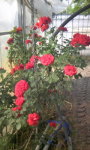 うちもぶどうつくってます。うちのぶどうのハウスのすみに植えてある薔薇が満開でした! 実をいうとぶどうは生物学的にいうと「バラ科」の植物です、みなさんしってました?